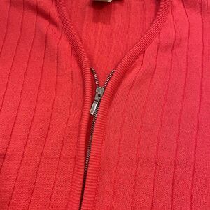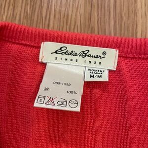 This Eddie Bauer knit sweater zip-up is a versatile and stylish layer, perfect for your next hiking trip or casual wear. Made from 100% knit cotton, it features a flattering V-neck design and a vibrant red-pink salmon hue, aptly dubbed "watermelon." Lightweight and comfortable, this sweater pairs practicality with a touch of bold color.