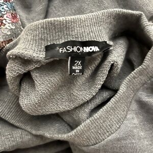 NWOT/Fashion Nova grey sequin sweatshirt, drop shoulder,ribbed cuffs & hemπ©Άπ