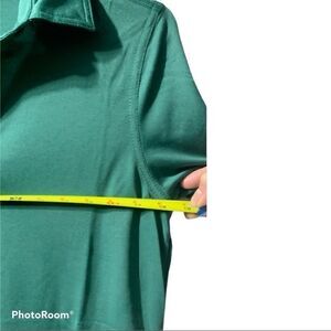 NWOT Harriton collared shortsleeved shirt. Very nice and light material and is great for summer comes in a beautiful green colour. Does have three buttons in front for closure The second photo looks more true to the colour.
