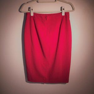Isaac Mizrahi red pencil skirt - size 4. More of a cherry red. Fully lined with back zipper closure. Back slit is still stitched. Never worn (NWOT).