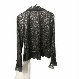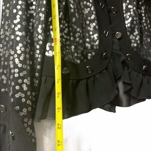 NWOT Joseph Ribkoff faux sequinned blazer. Has a ruffled design accented with silver button hardware and has a light shoulder pad. There are three buttons in front for closure comes in black with faux silver sequins. Super cute has a nice stretchy feel and is on the lighter side great add to any closet.