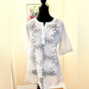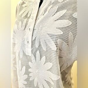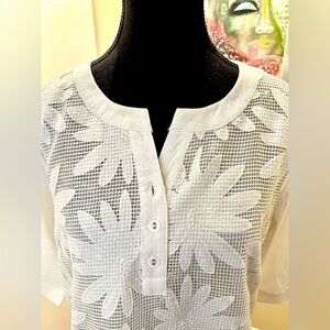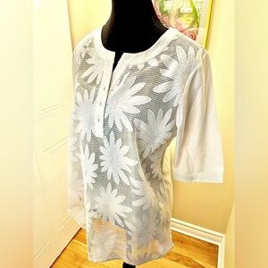NWOT/La Madona sequin mesh 3/4 button sleeve, floral design in white π€π€π€