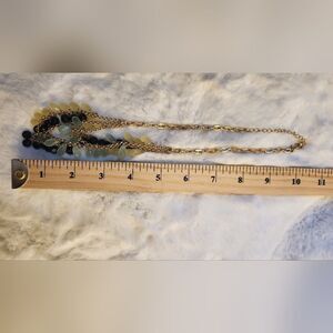 Very unique and beautiful necklace with translucent and black beads on gold chains