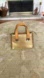 New without tags adorable little leather satchel bag. Gold with tan dual handles and silver tone hardware, zippered top, leather interior has one zippered pocket.