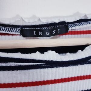 NWOT Sailor Striped Ribbed Korean Scallop Trim Top