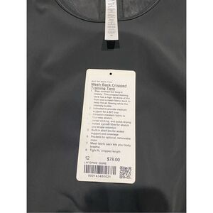 Dark graphite/grey colour size 12 Lululemon mesh back crop tank. This tank is new however the original price tag is no longer attached, but is included. Tag came off as I was trying it on.