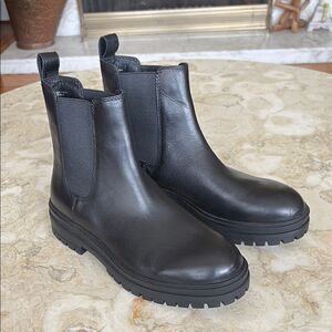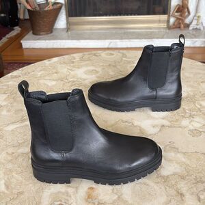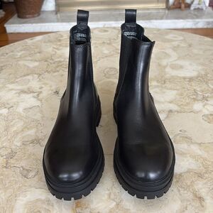 For a classic look, get yourself into a pair of Billiee black chelsea boot from Steve Madden. These are brand new without tags and feature a smooth leather upper. Light cushioned footbed for extreme comfort with synthetic lining that surrounds the foot in comfort. Elastic goring for easy on and off. The Billiee is made with a chunky, durable rubber outsole.