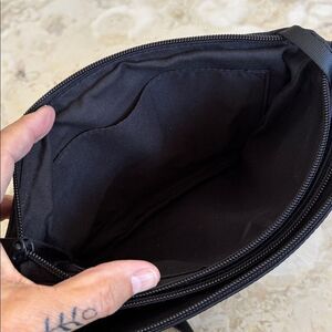 New without tags minimalist Tracker black nylon RDID crossbody bag with adjustable strap.