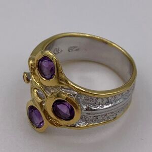 NWOT, solid sterling 925 ring with 22 K gold, real amethyst, wide band, texture