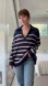NWT 100% cashmere Hudson North Navy and White Striped v neck Sweater large to 1x
