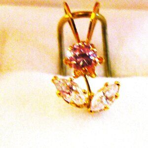NWT 14Kt Vtg Gold Cubic Zirconic Pendant,pink flower shaped