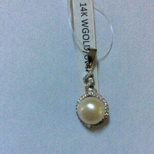 NWT 14k WHITE GOLD Round White Pearl 12mm Pendant MSRP $495
