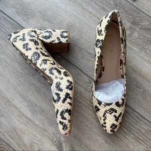 Switch up your workday looks in the 1.STATE® Halee pumps featuring snake-embossed leather upper.