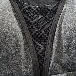 SPA 1x tiered tankini. No bottoms. Shelf bra with lightly padded cups. No underwire. Adjustable straps. Black mesh accent.