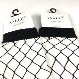 NWT Unused Large-scale Nordstrom fishnet Anklet socks with fine knit toes. 2 Pairs on this purchase. In original packaging. Shoe Size 6-10.5. Sock Size 9 - 11. Will add fun and a pop of personality to any outfit. 87% nylon, 13% spandex