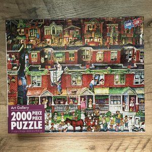 Excellent, unopened condition 2000 piece puzzle by Art Gallery. Features a city scape titled 'Neighborhood'. Final image measures 27" x 39". Great as a gift or save for a rainy day. Guaranteed no pieces missing as it's unopened.