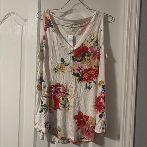 Embrace the elegance of the Maurices tank top, featuring a fitted silhouette and sleeveless design. The top is adorned with a beautiful pink and white floral pattern, adding a touch of sophistication to your wardrobe. Perfect for any casual occasion, this tank top combines style and comfort effortlessly.