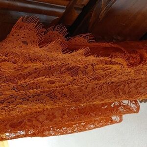 - beautiful rust coloured top , v-neck with soft lace eyelash fringe