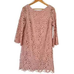 NWT 424 Fifth Lord & Taylor Knee-Length A-Line Lace Shift Dress Blush Nude Women's Size 8 LPH Peach Blossom