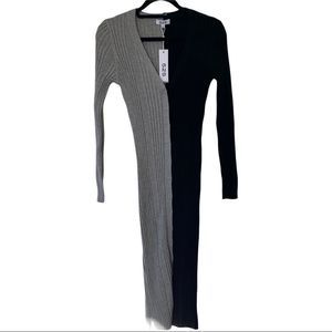 NWT 525 AMERICA WOMEN'S CONTRAST BUTTON UP RIBBED MAXI SWEATER DRESS BLACK/GREY