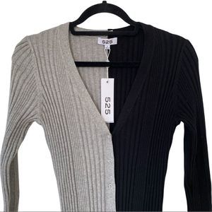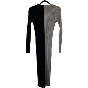 NWT 525 AMERICA WOMEN'S CONTRAST BUTTON UP RIBBED MAXI SWEATER DRESS BLACK/GREY SMALL