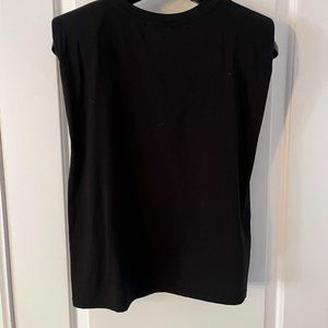 The 7 For All Mankind shoulder pad sleeveless top. Pairs perfectly with joggers, trousers, and your favorite jeans.