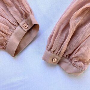 NWT 7 FOR ALL MANKIND SILK BLEND BLUSH PINK TIE-NECK SHEER BLOUSE - L