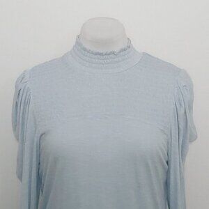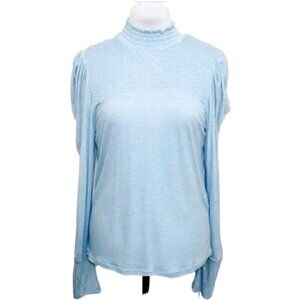 NWT 7 FOR ALL MANKIND Baby/powder blue, smock, mock neck, puff sleeves, top, size Large. Nice super light, soft and stretch fabric. Brand new with tags! Please don't hesitate to ask if you have any questions!