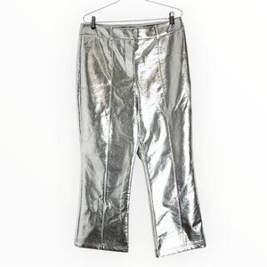 NWT 7 For All Mankind Silver Foil Vegan Leather Straight Leg Pants size L