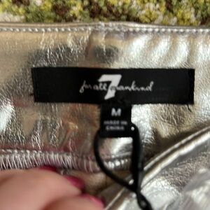 NWT 7 For All Mankind Women's Silver Metallic Faux Leather Vegan Pants