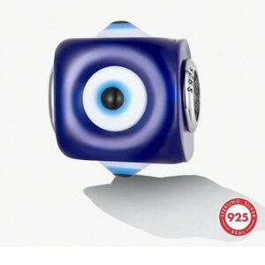 NWT 925 Sterling Silver Watchfull Eye Glass Bead Charm for Bracelet or Necklace