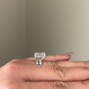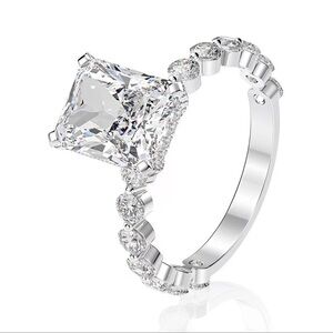 Brand new in box, 925 stamped wedding ring set, radiant and sparkly stone,