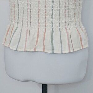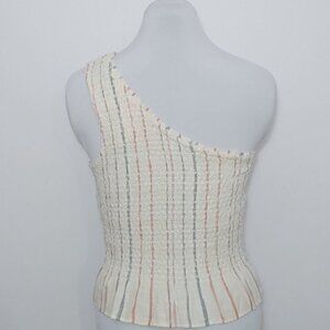 NWT AMERICAN EAGLE OUTFITTERS Ivory, striped, one shoulder, smock, ruffled hem, peplum boho, festival, western, muted colors, top. size small. Nice linen and cotton blend fabric. Brand new with tags! Please don't hesitate to ask if you have any questions! Measurements: