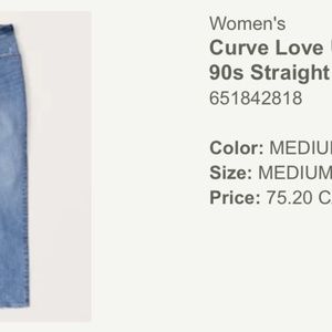 Curve Love Ultra High Rise 90s Straight Jean: On-trend 90's-style ultra high rise straight jeans in our signature Curve Love fit with built-in stretch for superior comfort featuring our highest rise that sits at your natural waist and looks great with your shirt tucked or untucked. Curve Love features an additional 2" through the hip and thigh to help eliminate waist-gap. With refined details and a vintage feel from top to bottom, this style features a full length leg, medium marbled indigo wash and slightly frayed hem.