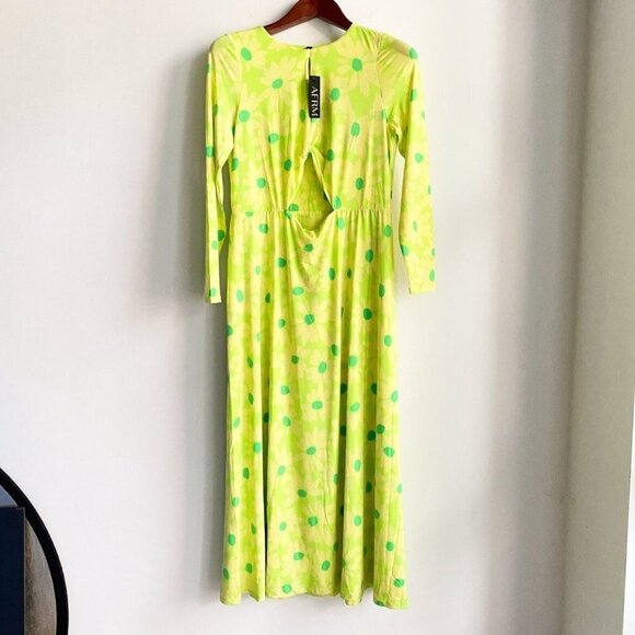 NWT AFRM Lime Green Yellow Floral Long Sleeve Jodi Dress L.