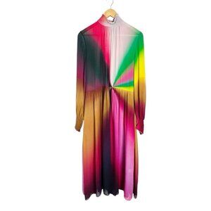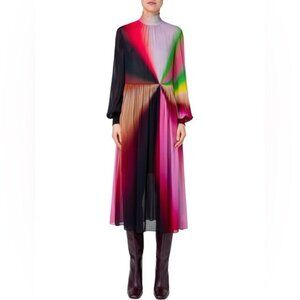 NWT AKRIS PUNTO Sunburst Sheer Chiffon Midi-Dress size 10