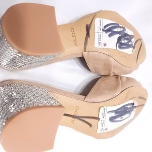 NWT ALDO Champagne Rhinestone Block Glitter Heel US7