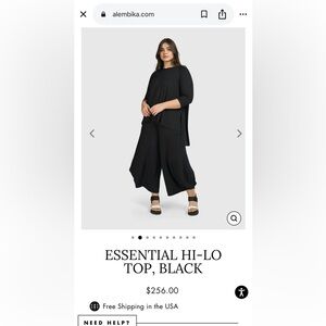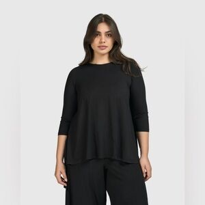 NWT ALEMBIKA ESSENTIAL HI-LO TOP, BLACK 14/16 Large lagenlook oversized tunic