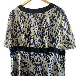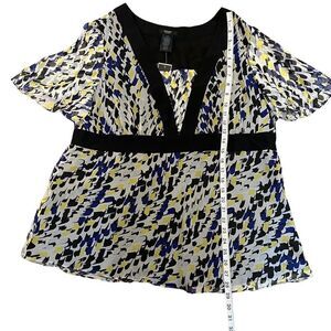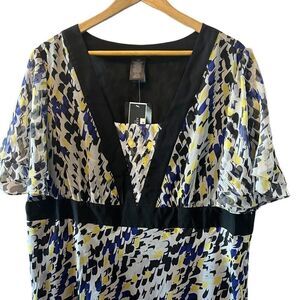 NWT ALFANI 100% Silk Printed Deep Neck Short Flutter Sleeve Dressy Top 18W