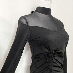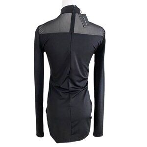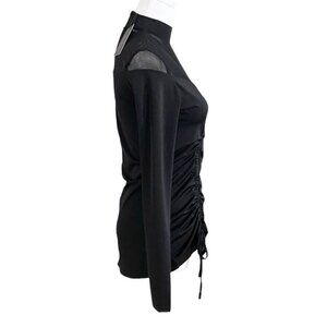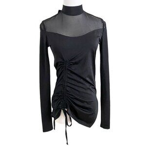 NWT AMYSHEHAB BLACK NOIR MESH CINCHED LONG SLEEVE TOP - XS
