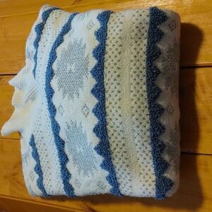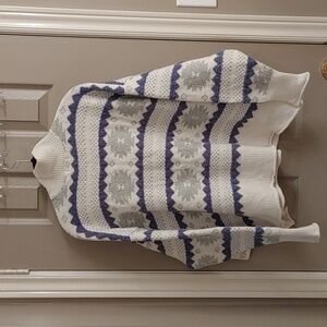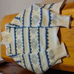 - beautiful cozy oversized sweater in white, blue and gray with mock turtleneck