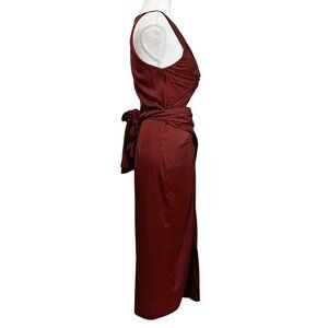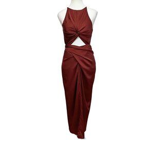 NWT ANDREA IYAMAH RENI SATIN TWIST FRONT CUT OUT MIDI DRESS IN CHOCOLATE BROWN