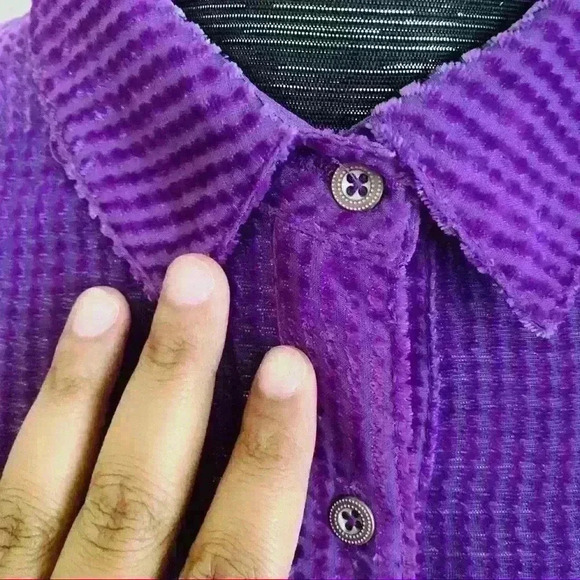ANTHROPOLOGIE VELVET LONG PURPLE BLOUSE