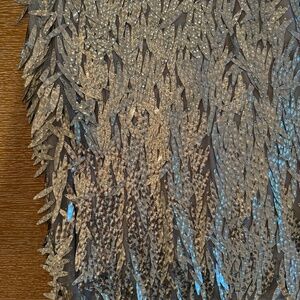 NWT ANTHROPOLOGIE Silver Sequin Fringed Midi Skirt, Size 2
