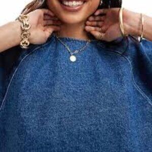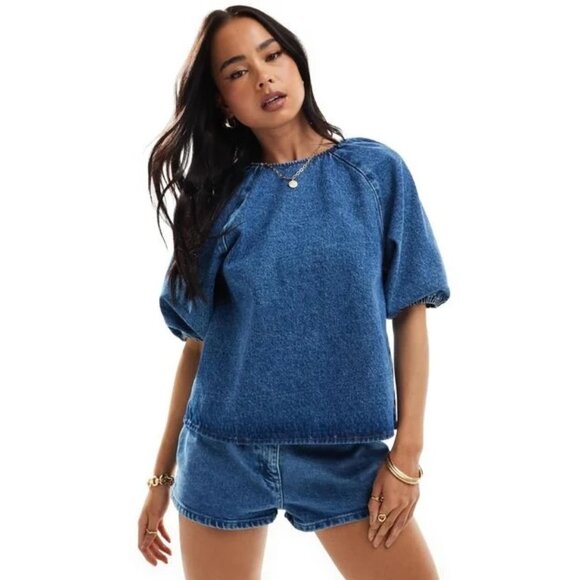 NWT ASOS DESIGN denim raglan puff sleeve top in mid blue