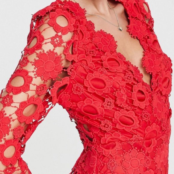 NWT ASOS Love Triangle fitted mini dress in all over red lace