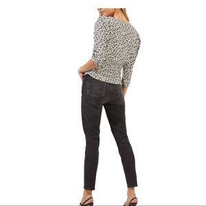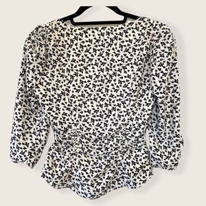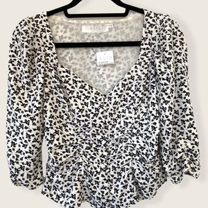 NWT ASTR The Label Button Front Ruched Floral Top White/Black Size XS