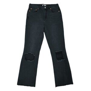 NWT AVEC LES FILLES Black high rise distressed flared crropped jeans