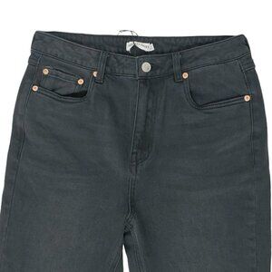 NWT AVEC LES FILLES Black wash, high waist, distressed, raw hems, flared, cropped jeans, size 27. Nice 35% cotton fabric with some stretch to it.