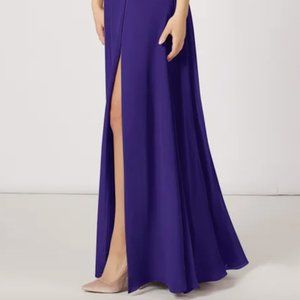 Features: Purple floor length chiffon dress with boning and padding. Extra length to fit various heights.